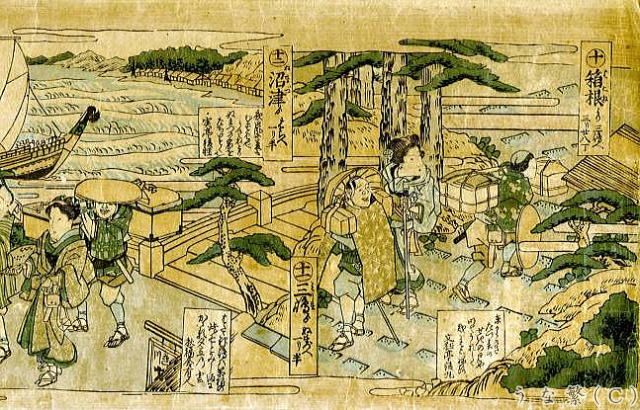 画像は五十三次の「箱根」から「吉原」までの図で 原から吉原の間には