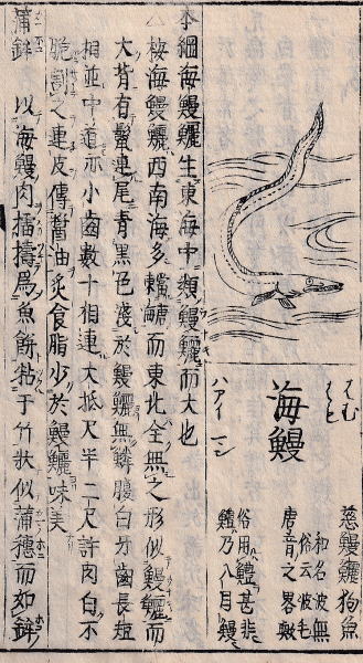 【紅海 無鱗魚】 巻五十一に 「海鰻」「阿名呉」