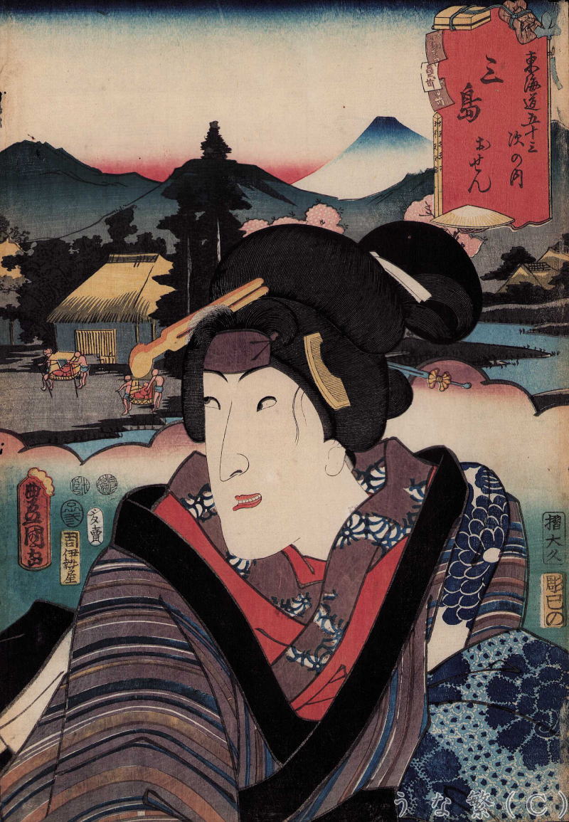 題名 役者見立 「東海道五十三次の内 三島 おせん」