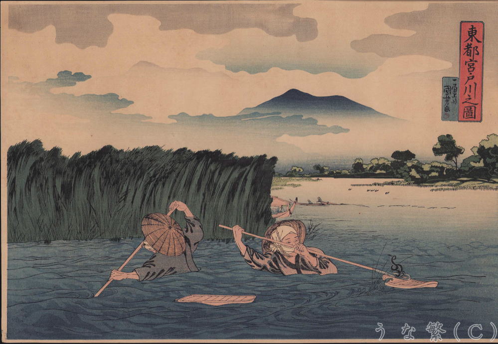 その河口に近い泥底の場所で「ウナギ掻き」を使用して