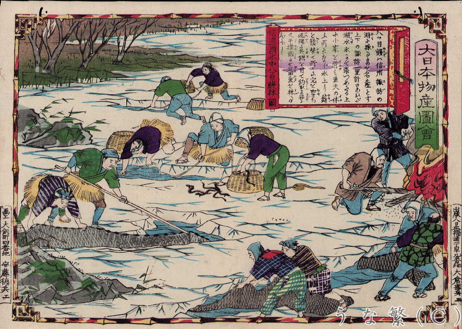 大日本物産図会 信濃国氷中八ツ目鰻採ノ図