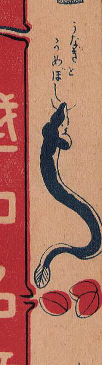 文字は「うなぎとうめぼし」とかかれ絵は「ギンナン」で何を勘違いしたか