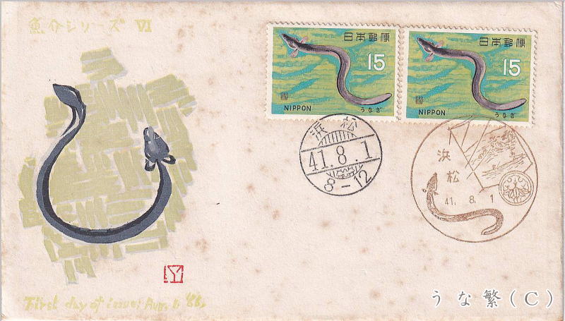 1966年8月1日発行ウナギ切手とFDC・MC