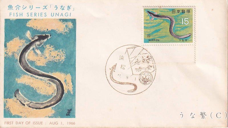 1966年8月1日発行ウナギ切手とFDC・MC