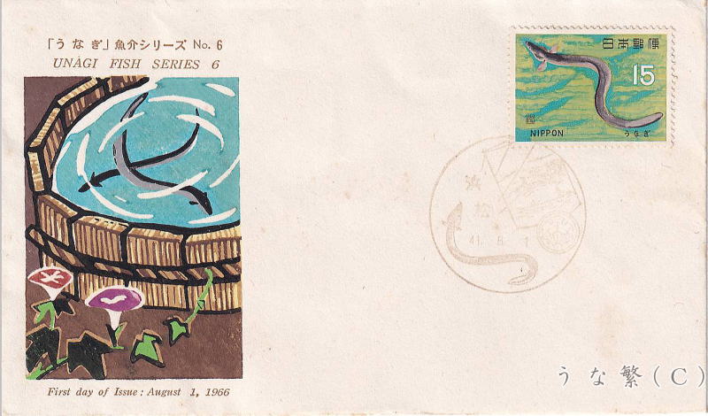 1966年8月1日発行ウナギ切手とFDC・MC