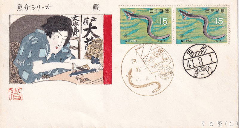 1966年8月1日発行ウナギ切手とFDC・MC