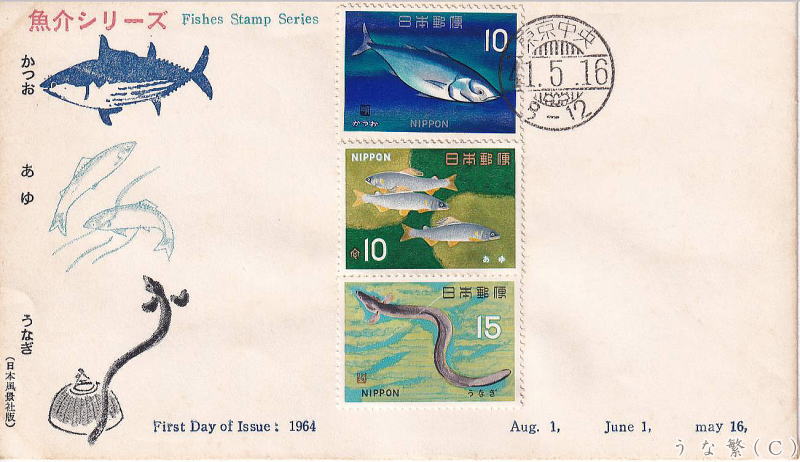 1966年8月1日発行ウナギ切手とFDC・MC