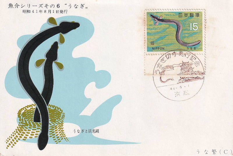 1966年8月1日発行ウナギ切手とFDC・MC