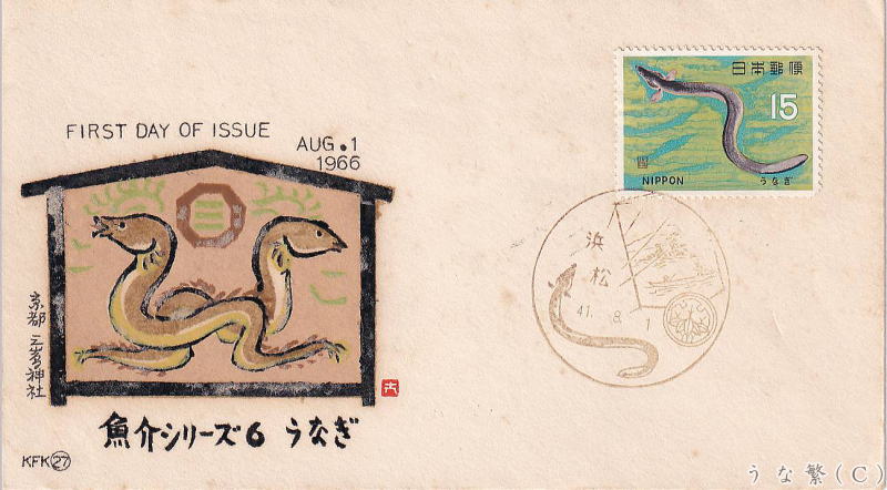 1966年8月1日発行ウナギ切手とFDC・MC