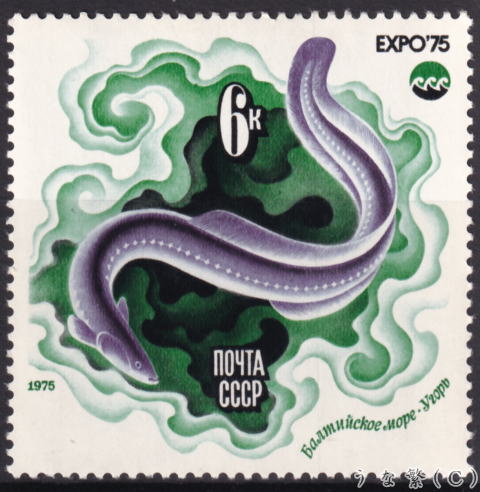 1975.july.22 Sturgeon Caspian Sea Oceanxpo75 Emblem Eel