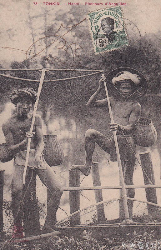 Vietnam postcards Tonkin Hanoi Eel fishermen