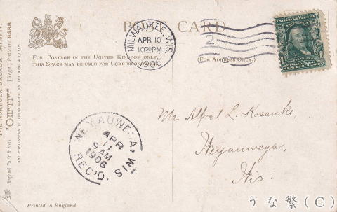 ウナギ漁のハウスボートの絵葉書