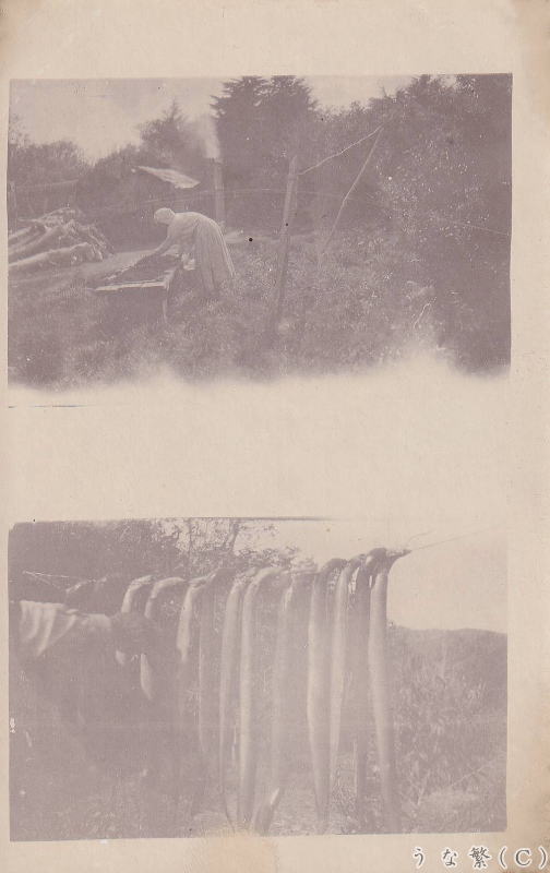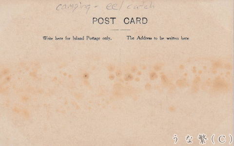 恐らく1900年代、イギリスの獲れた鰻を現場で燻製にしている写真の絵葉書