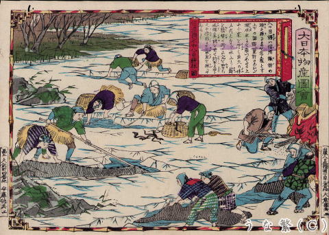 「大日本物産図絵 信濃国氷中八ツ目鰻採ノ圖」です