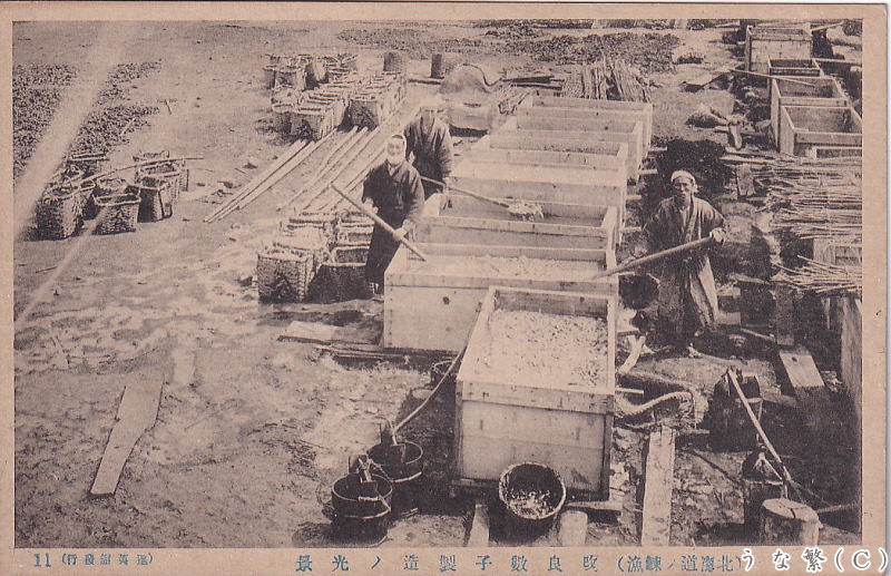 北海道の鰊漁 改良数子製造の光景