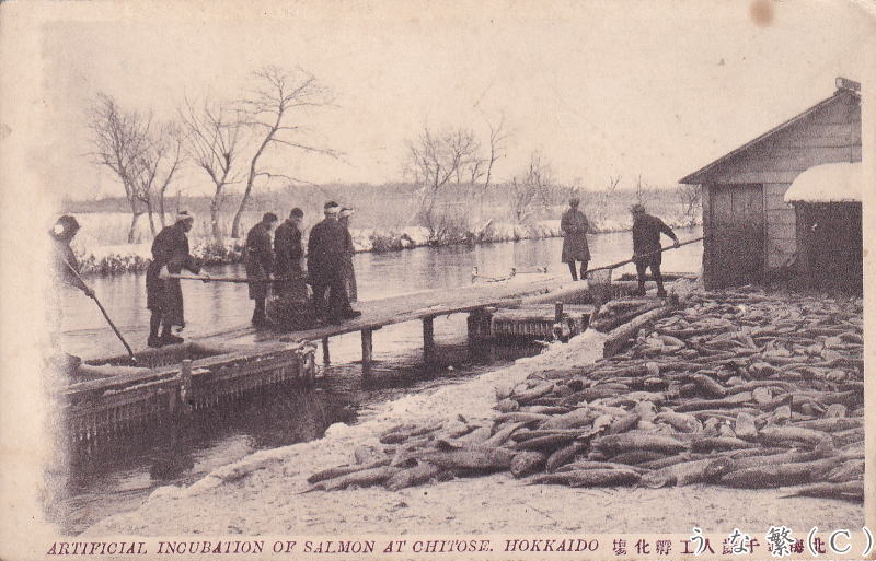 明治21年に官営の「千歳孵(ふ)化場」を設置したのが、本格的なサケの人工ふ化の始まりです