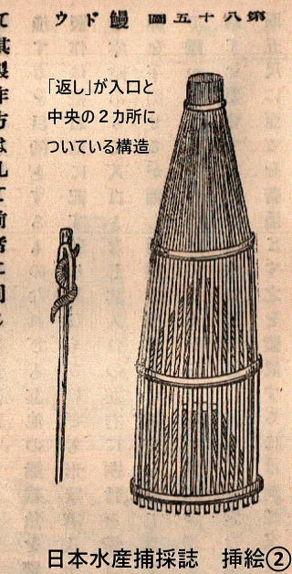 一度入ったら逃げられない仕掛けですが、挿絵②のように入口のほか中央にもつけている