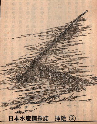 挿絵③のように、簡単な魚道を作り魚を誘導するときはエサを仕込みません